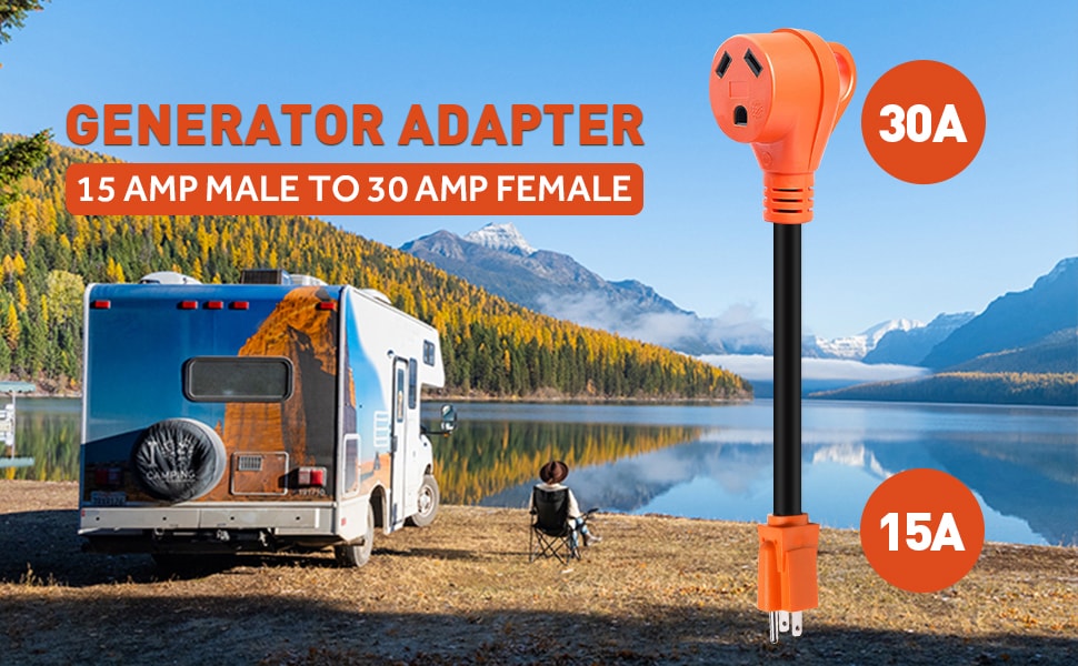 15 安培至 50 安培 RV 适配器:SnowyFox 15A 公头插头 5-15P 至 50A 母头 14-50R 插座房车电源线适配器,18 英寸长,线规10 AWG,最大负载 125V/1875W,快速为露营车、拖车、大篷车供电。