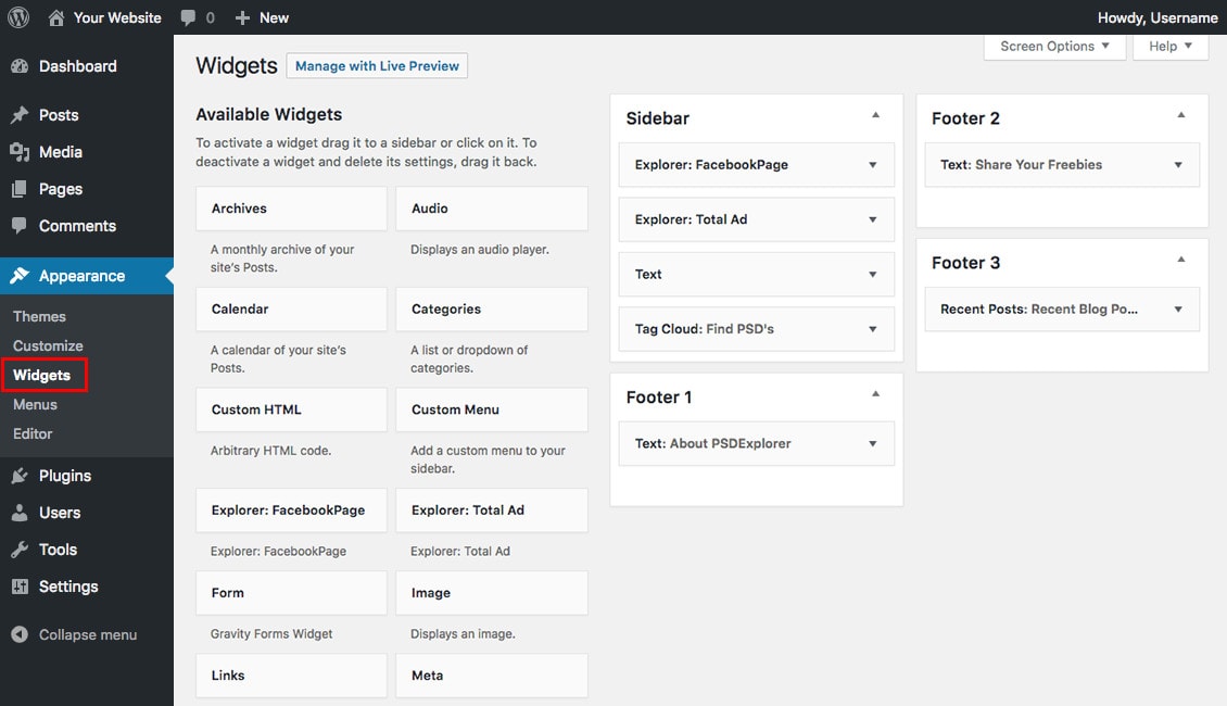 WordPress 页脚(如侧边栏)使用小部件(除非您的主题包含自定义或替代页脚)。只需转到 外观 > 小部件即可进行更改。